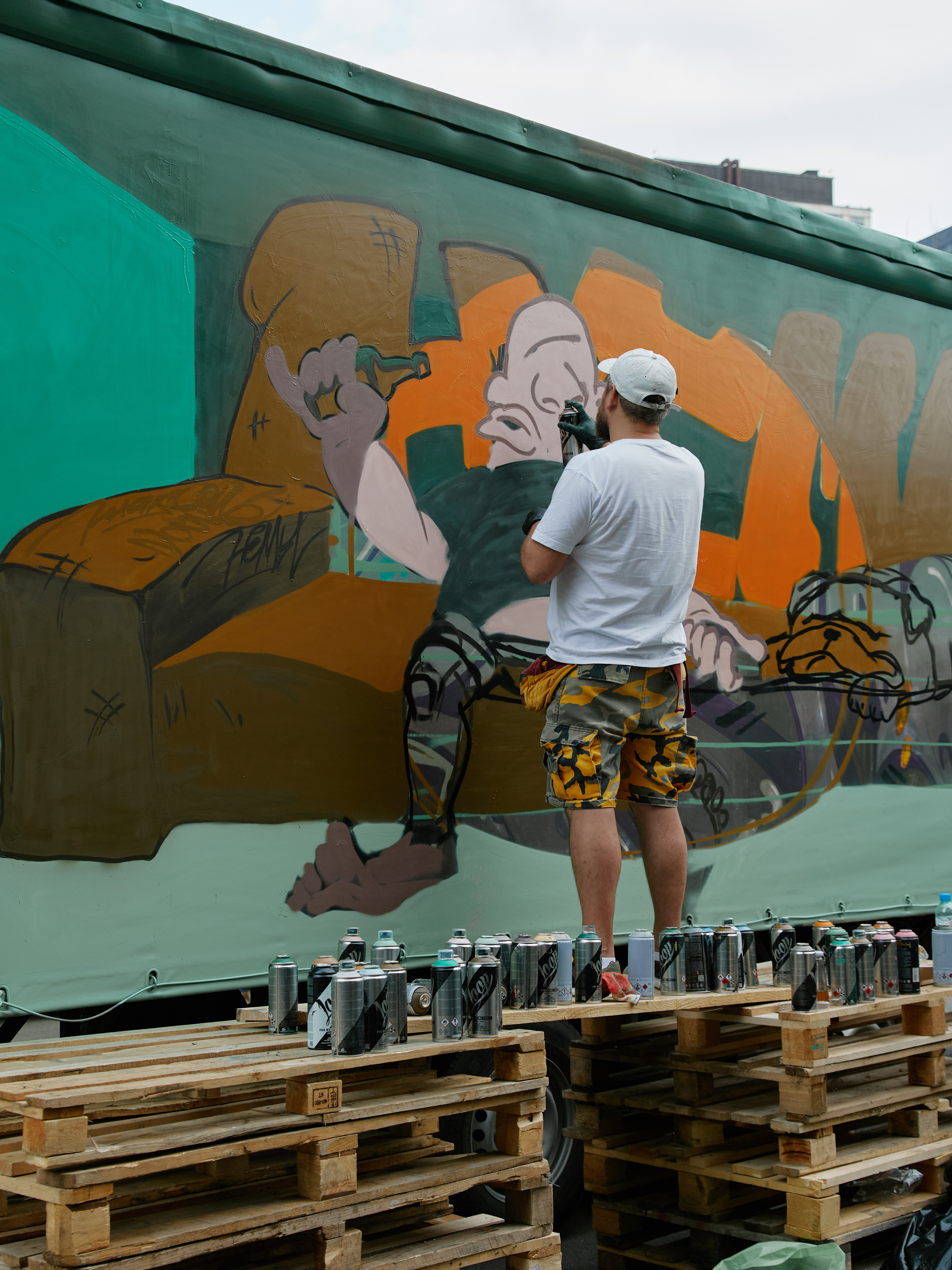 Фестиваль «Внимание» вышел за рамки классического граффити-джема. Он стал настоящим культурным хабом. На парковке кластера десятки художников расписывали грузовики, которые позже отправились в путешествие по всей России. В перформансе приняли участие топовые граффитчики: Sar, MAGU, Pack, Abord, Kgs, Humor и другие.