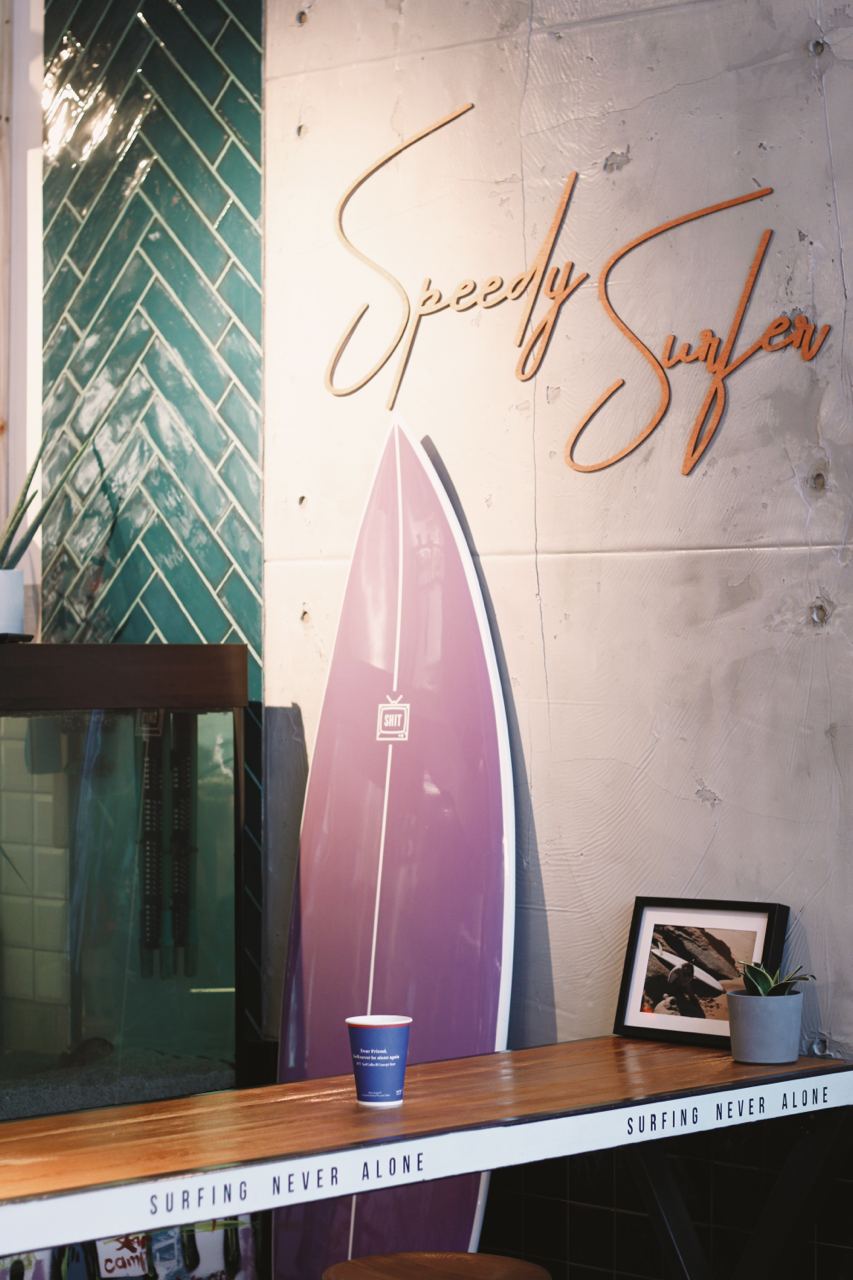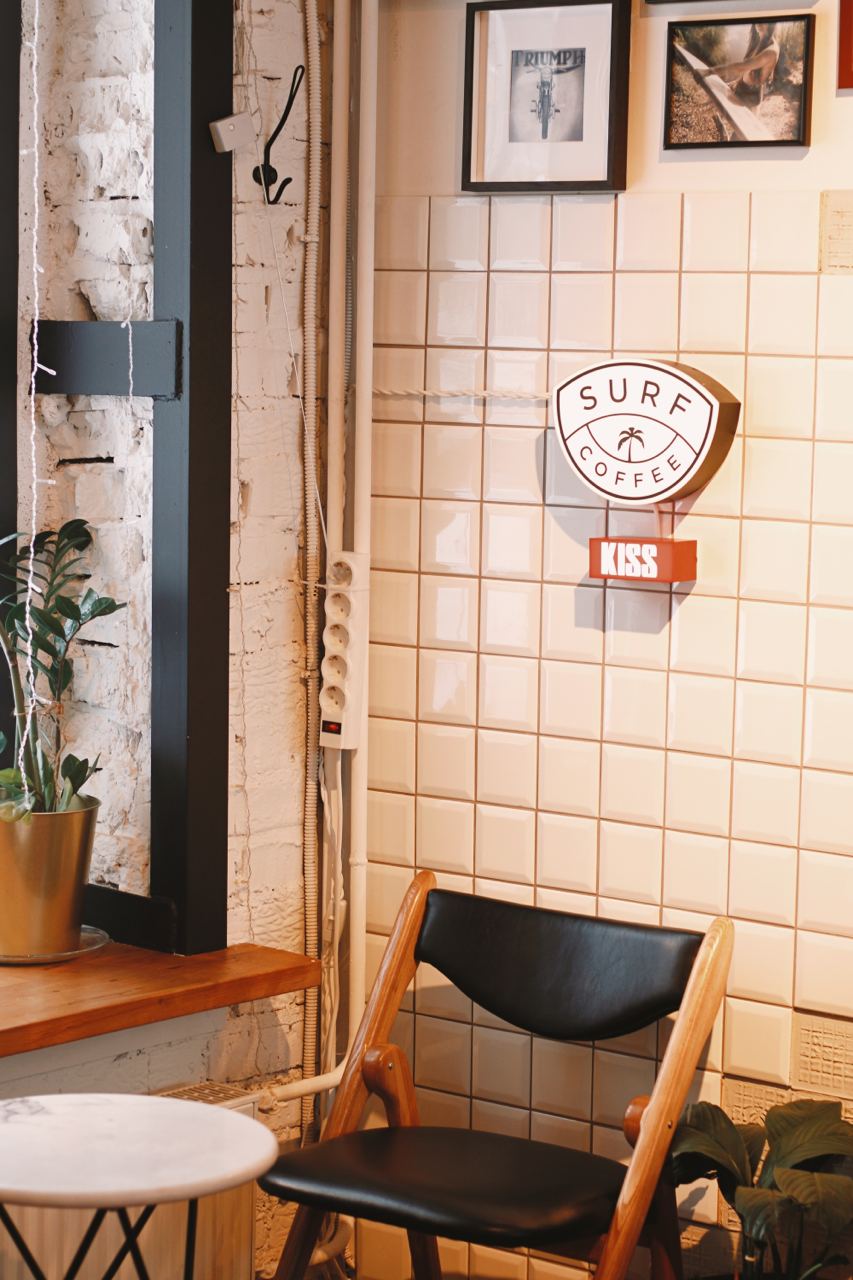 Саша: Кстати, вот этот автобус, который у нас есть, эта зона — это всё из самого первого Surf’a в Москве. Его закрыли, и все эти старые досочки, автобус, надписи, этот стол — короче, первый спот в Москве, теперь здесь. (смеётся)