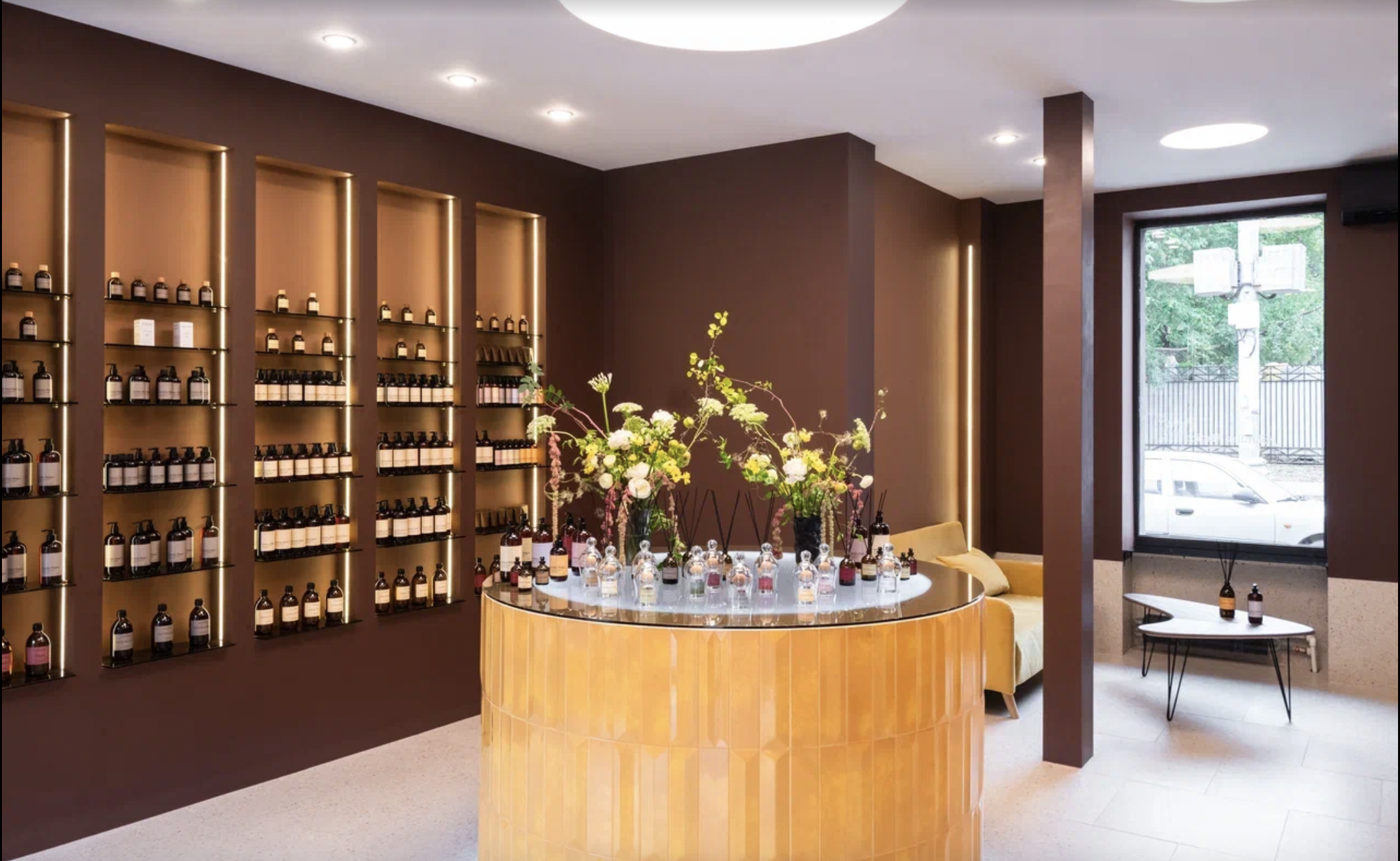 В интерьере также задействованы объекты русских художников-дизайнеров: керамические вазы от Юлии Веснухи, деревянная напольная ваза от Soha Concept, специально изготовленная для бутика. Пространство будет постоянно оформлено цветочными композициями, созданными флористом бренда — Таней Hikimastery.