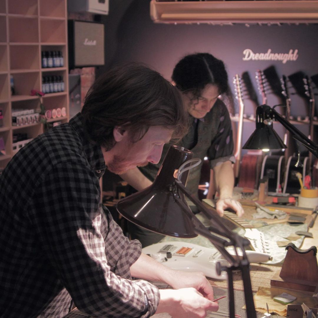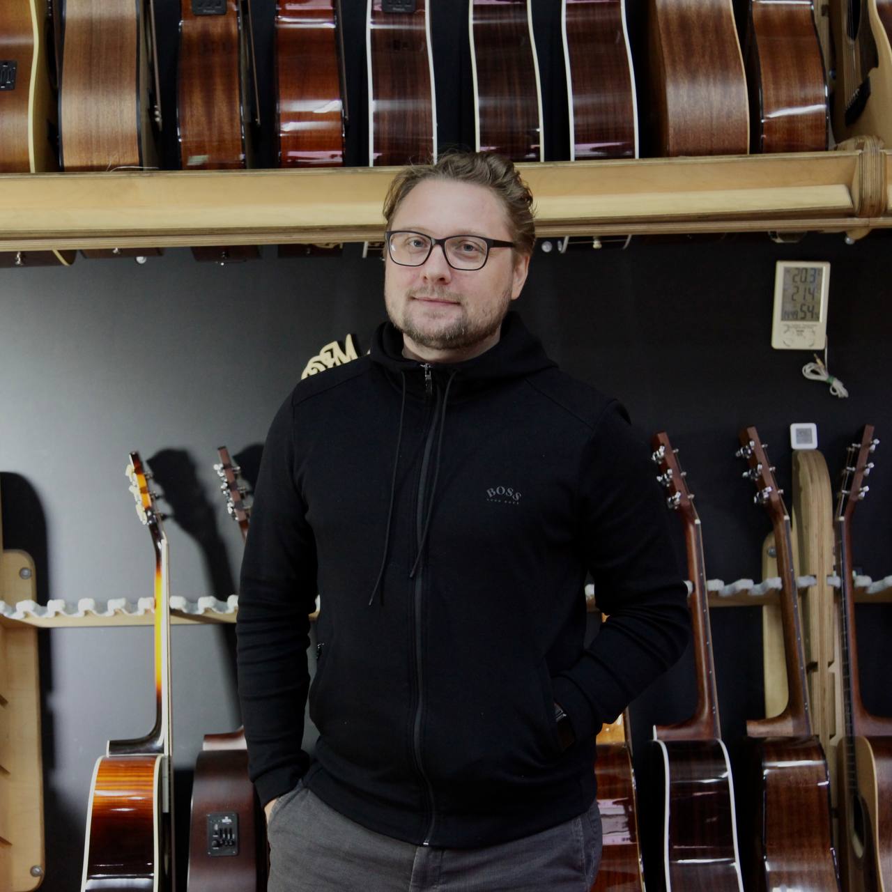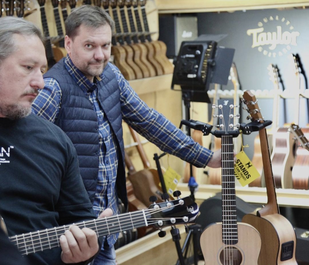 Это деревянный музыкальный инструмент, а дерево сильно подвержено влиянию климатических условий. У нас они сложные — 4 сезона, постоянные перепады температуры. Поэтому если ты зайдёшь в любой магазин, посмотришь на гитару, вне зависимости от её цены, хоть за 3000₽, хоть за 300.000₽, хоть за 1.000.000₽, ты найдёшь на них одни и же проблемы. Зимой, когда воздух сухой, он отдаёт влагу, и металлические части начинают выпирать, дерево начинает немножко «вести». Магазин и мастерская — такие продукты должны работать вместе. А в России до нашего появления такого не было.