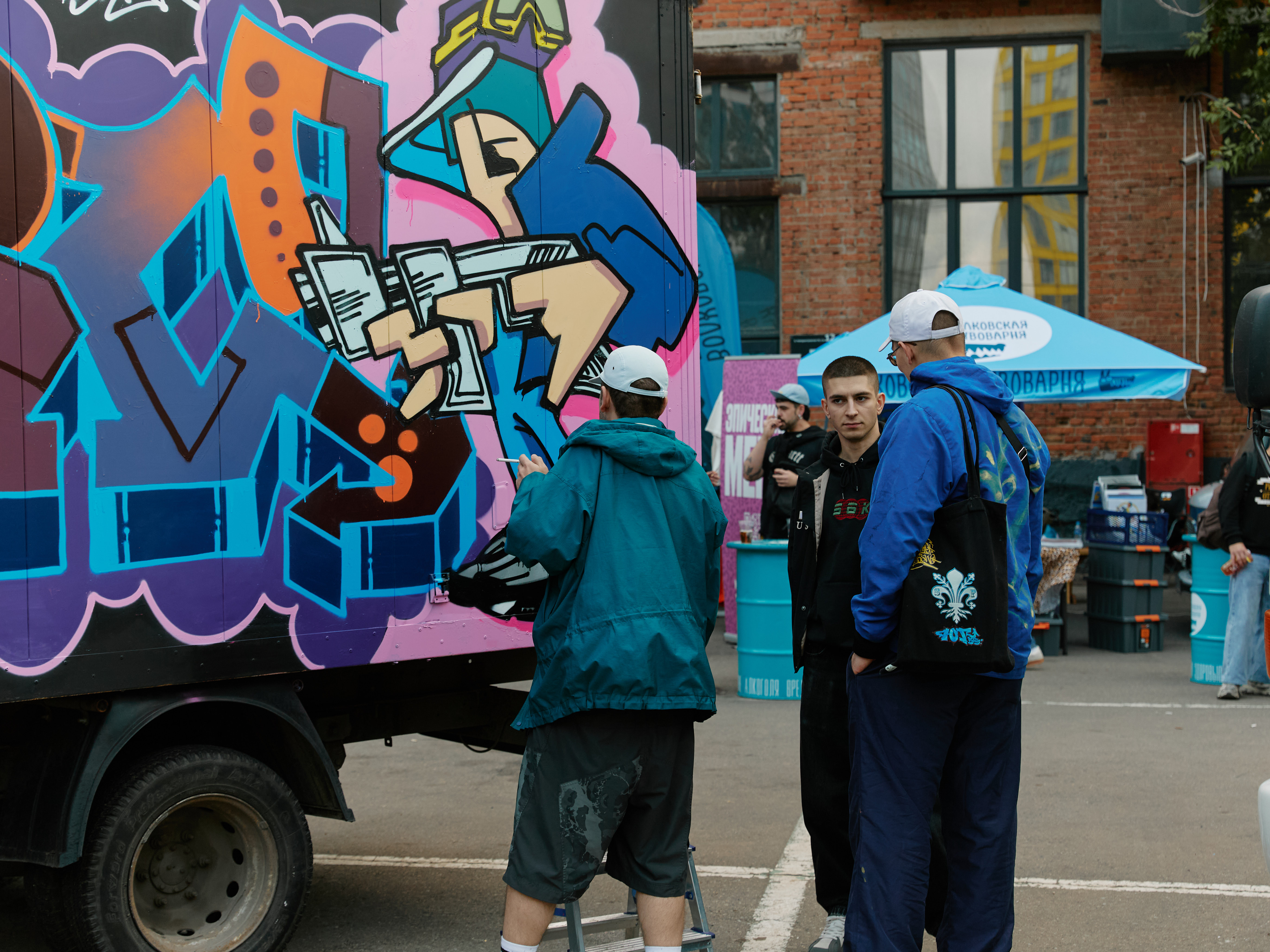 Фестиваль «Внимание» вышел за рамки классического граффити-джема. Он стал настоящим культурным хабом. На парковке кластера десятки художников расписывали грузовики, которые позже отправились в путешествие по всей России. В перформансе приняли участие топовые граффитчики: Sar, MAGU, Pack, Abord, Kgs, Humor и другие.