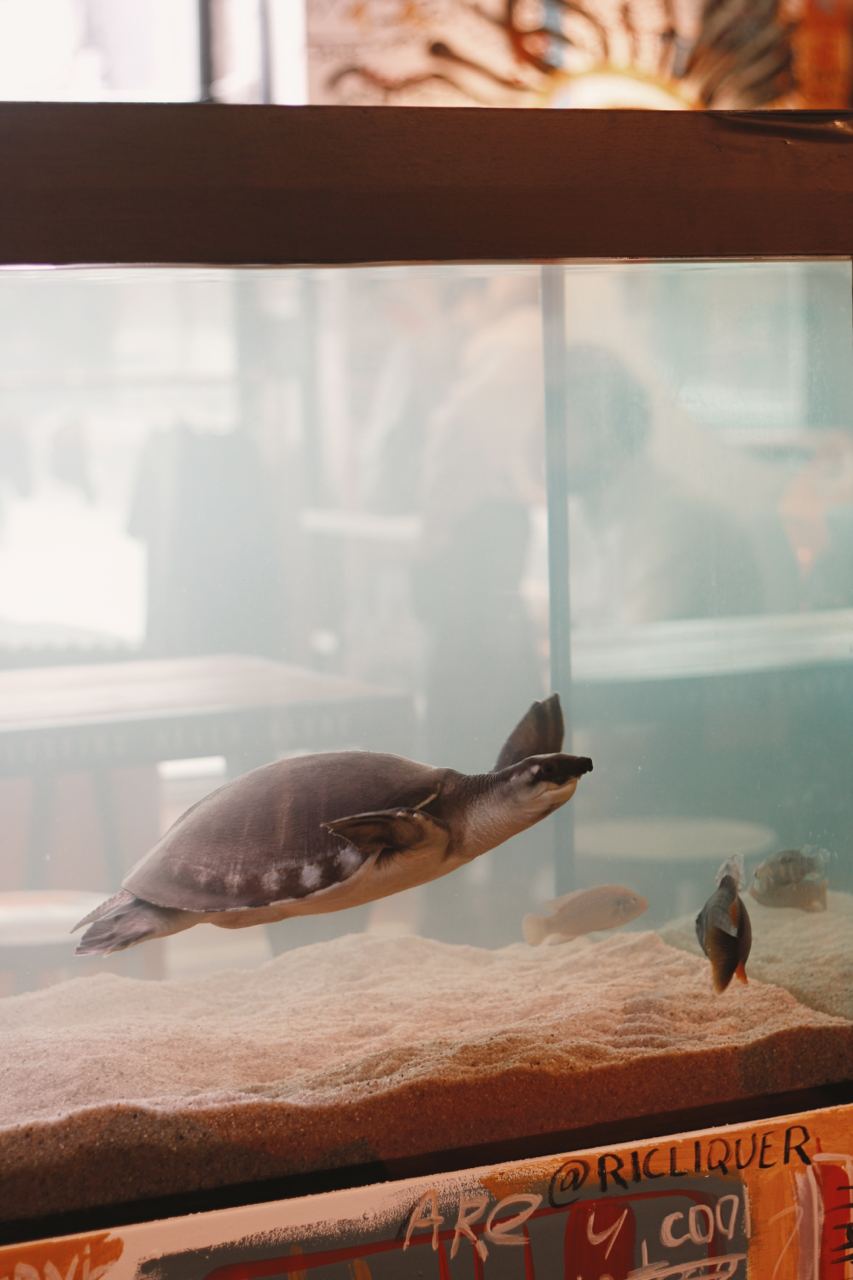 *В Surf Coffee на Дизайн заводе стоит большой аквариум, в котором живёт Двухкоготная черепаха - Спизи.