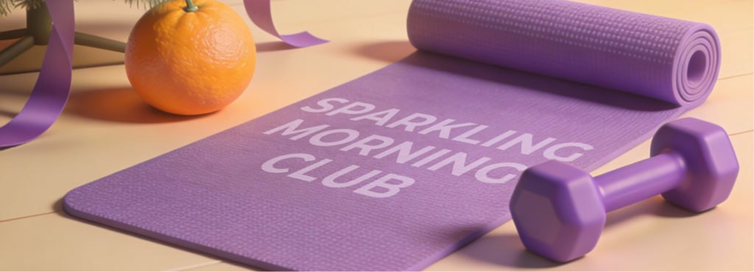 Утренние тренировки Sparkling Morning Club от @fitmost и @designzavod_ru с игристым, фильмами и новогодними плейлистами — весь декабрь и январь 🎄