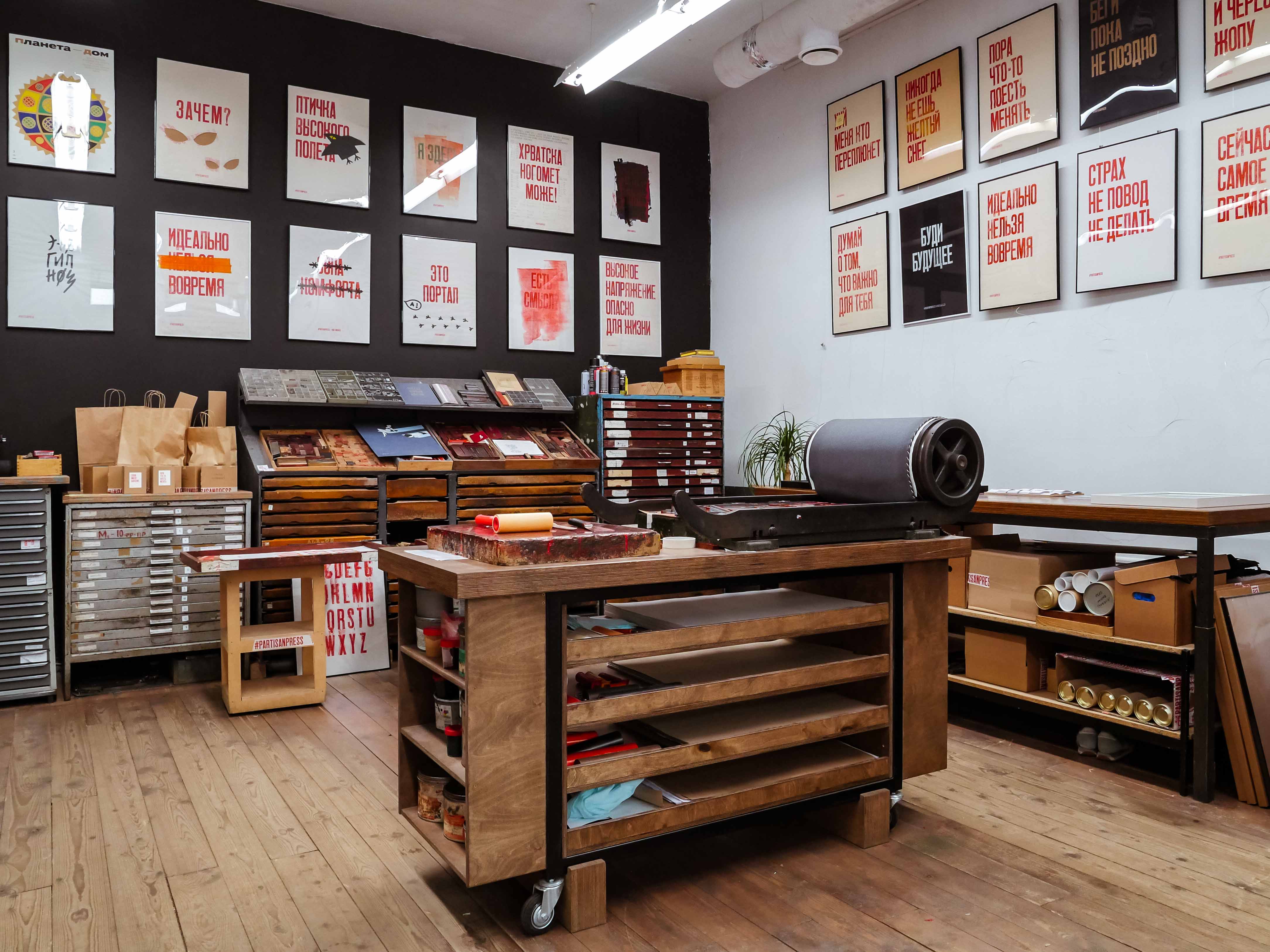 Печать плакатов на старом прессе.
